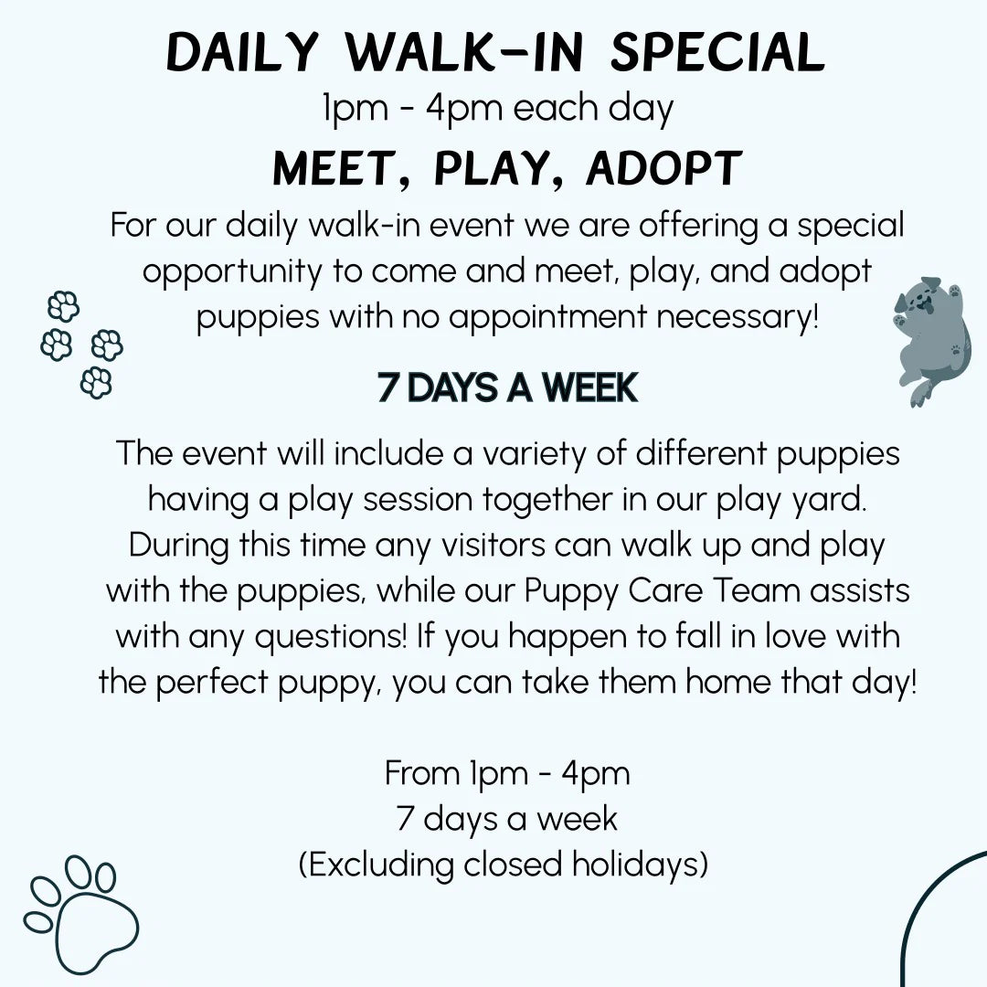 Take home a furry friend today and get 25% off the second puppy!
